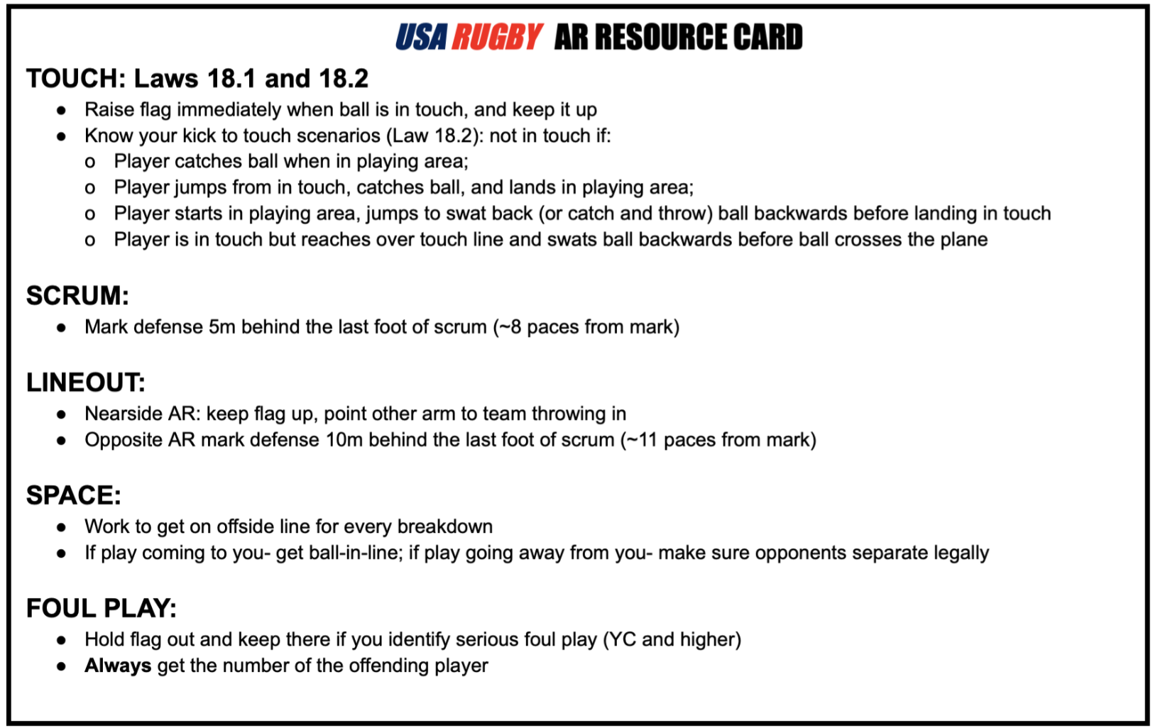 AR RESOURCE CARD Apr 2 Written By Marc Nelson Thanks for this Graphic provided by Matt Lake for referees to share with their ARs. rugbyassistantrefereeresource Marc Nelson